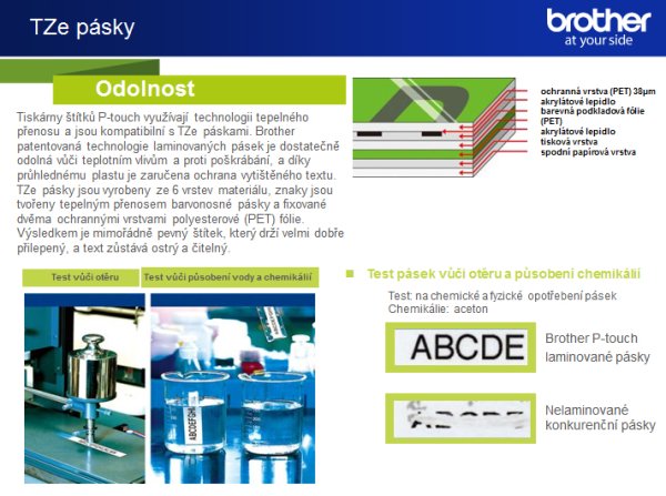 Brother patentovaná technologie laminovaných pásek je dostatečně