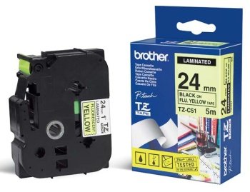 Originální kazeta s páskou Brother TZe-C51 - černý tisk na fluorescenční žluté, šířka 24 mm