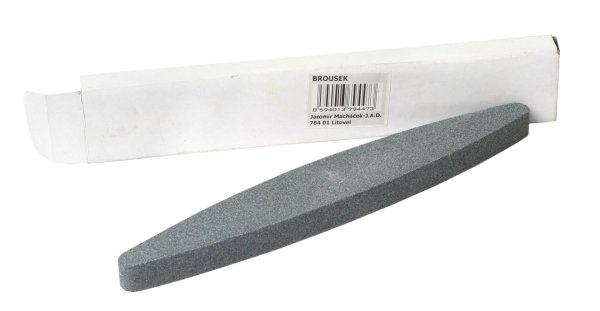 Brousek je určen na nabrušování kosy. Materiál: brusný kámen. Délka: 23 cm, výška: 1,3 cm.