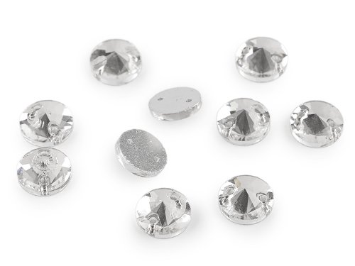 Skleněné kamínky mají precizní výbrus, díky kterému se efektně třpytí. V každém kamínku jsou dva otvory, které umožňují snadné našívání. [Na rubové straně jsou opatřeny krycí barvou, která zabraňuje zbarvení dle přiloženého podkladu.] Oceníte je při výrobě šitých šperků nebo zdobení oděvů. Kamínky oslnivě vyniknou na společenských šatech, halenkách a doplňcích, jako jsou kabelky, psaníčka, klobouky apod.