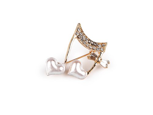 Brož s hudebním motivem ocení všichni muzikanti a milovníci hudby. Je ozdobená barevným smaltem. Kombinace jemných linií a různorodých tvarů, jako jsou noty, houslový klíč a klaviatura, dodává broži unikátní šarm. Ze zadní strany má brožový špendlík. Efektně působí nejen na oděvech, ale je vhodná i k ozdobení klobouků, tašky či sepnutí šátku. Brož je na plastové kartě, kterou lze zavěsit na prodejní stojany. Brož č.3 a 4 je ozdobená broušenými kamínky, ostatní brože mají barevný smalt.