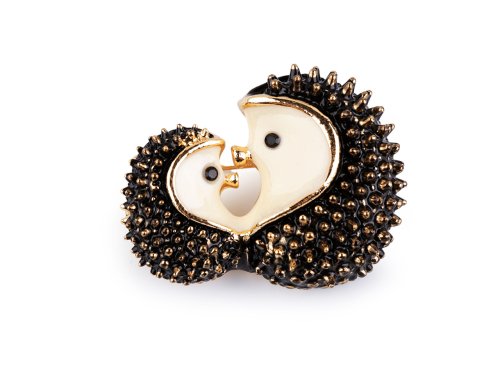Brož ježka s barevným smaltem bude zajímavou ozdobou vašeho oděvu. Je perfektně zpracovaná s precizním zaměřením na detaily. Smalt má perleťový nádech, bodliny mají kovový lesk. Ze zadní strany je brožový špendlík. Brože efektně působí nejen na oděvech, ale jsou vhodné i k ozdobení klobouků, tašky či sepnutí šátku. Jsou na plastové kartě, kterou lze zavěsit na prodejní stojany. Brož č.2 nemá perleťový lesk.