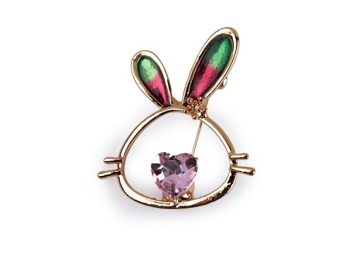 Brož zajíčka s broušeným srdíčkem a barevným smaltem vás okouzlí svou duhovou hrou barev a hravým designem. Vsazené broušené srdce se nádherně třpytí. Brož je velice milá a originální, můžete ji využít na běžné nošení i na společenské události - večírky, oslavy apod. Z rubu má brožový špendlík. Můžete ji nosit nejen na oděvech, hodí se i k ozdobení klobouků, tašky či sepnutí šátku. Brož je na plastové kartě, kterou lze zavěsit na prodejní stojany.