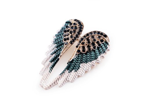 Brož křídel s barevným smaltem je velice poetická. Je ozdobená broušenými kamínky s jemným leskem, můžete ji využít na běžné nošení i na společenské události - návštěvy divadel, oslavy apod. Z rubu má brožový špendlík. Můžete ji nosit nejen na oděvech, hodí se i k ozdobení klobouků, tašky či sepnutí šátku. Brož je na plastové kartě, kterou lze zavěsit na prodejní stojany.