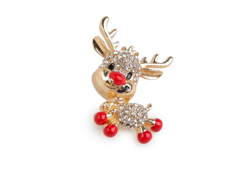 Elegantní brož s roztomilým sobem bude hravým doplňkem vašeho oděvu. Díky bohatému zdobení broušenými kamínky se efektně třpytí, skvěle dozdobí košile, saka, svetry, kabelky či čepice. Hodí se i na ozdobné sepnutí šátku. Sob č. 3 a 4 je ozdobený imitací perleti. Brož má vzadu brožový špendlík. Je na plastové kartě, která se dá zavěsit na prodejní stojany.