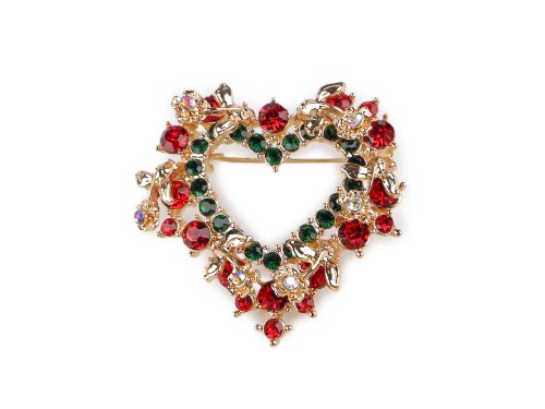 Brož s broušenými kamínky vánoční stromeček, srdce - červená srdce