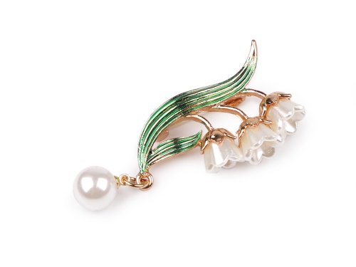 Elegantní brož s motivem rostlin bude perfektním doplňkem vašeho oděvu. Díky perlám a barevnému smaltu skvěle dozdobí halenky, šaty, saka, svetry, kabáty, kabelky či čepice. Hodí se i na ozdobné sepnutí šátku. Brož má vzadu brožový špendlík. Je na plastové kartě, která se dá zavěsit na prodejní stojany.