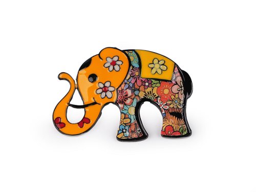 Brož slona s barevným smaltem je doplňkem, který okamžitě upoutá pozornost. Svým designem spojuje hravost s elegancí, což z ní činí ideální volbu pro sběratele originálních šperků, kteří ocení její umělecké zpracování a barevnost. Z rubu má brožový špendlík. Můžete ji nosit nejen na oděvech, hodí se i k ozdobení klobouků, tašky či sepnutí šátku. Je skvělým dárkem pro každého, slon s chobotem nahoru je nositelem štěstí. Brož je na plastové kartě, kterou lze zavěsit na prodejní stojany.