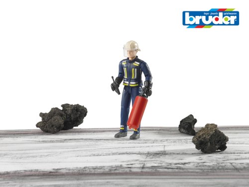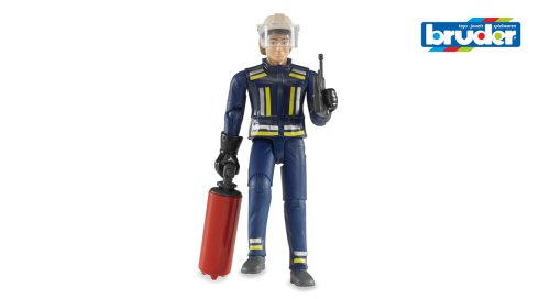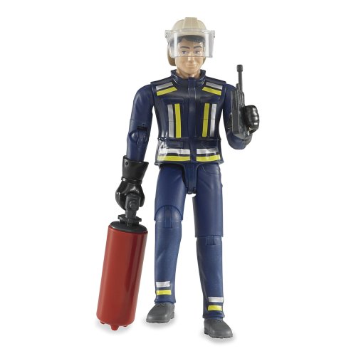 Bruder Bworld Figurka hasiče má pohyblivé kloubové končetiny, pohyblivou hlavu, ruce uzpůsobené k uchycení předmětů. Postava působí velmi realistickým dojmem a její součástí je přilba se štítem, vysílačka, hasicí přístroj a rukavice. Vyrobeno v Německu, z kvalitních materiálů. Hlavní vlastnosti: kloubová figurka hasiče s příslušenstvím vyrobeno v Německu