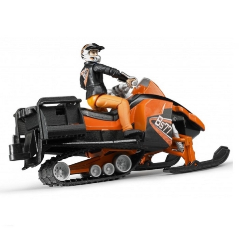 Oranžový sněžný skútr s figurkou má dvojité sedadlo pro 2 figurky BWORLD, dva držáky nářadí, odnímatelné závěsné zařízení, odnímatelné držáky batohů s uchycením krabic s nářadím. Skútr má gumové pásy a zatáčecí lyžiny. Figurka řidiče má helmu a rukavice. Vyrobeno v Německu, z kvalitních materiálů. Hlavní vlastnosti: sněžný skútr s figurkou ze série BWORLD mnoho funkcívyrobeno v Německu