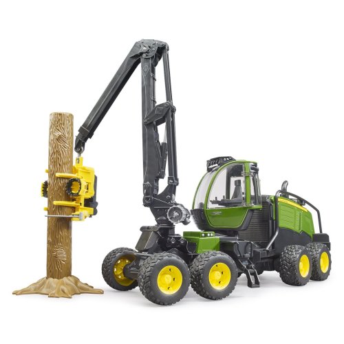 Lesní kombajny John Deere 1270G díky svým osmi kolům vynikají stabilitou a maximální průchodností terénem. Působivý model nabízí ohromující množství věrně zpracovaných detailů. Do kabiny se nastupuje po skládacích schůdcích a lze jí v celém rozsahu otáčet, samozřejmostí jsou otevíratelná dvířka a kompatibilita kabiny s figurkami BWORLD. Podvozek je vybaven čtveřicí kyvných náprav a na pneumatikách robustních kol je podrobně vyveden terénní vzorek. Propracované pohyblivé rameno s pilovou jednotkou je vybaveno funkčními kleštěmi s detaily posuvných válců. Součástí modelu je kmen stromu s podnožím, můžete si tak začít bezprostředně hrát. Vyráběno v Německu, z kvalitních materiálů. Hlavní vlastnosti:kombajn a kmen stromu s podnožímotočná kabina se skládacími schůdky a otevíratelnými dvířkypohyblivé rameno s funkčními kleštěmi pilové jednotkykyvné nápravykompatibilní s figurkami BWORLDvyrobeno v Německu