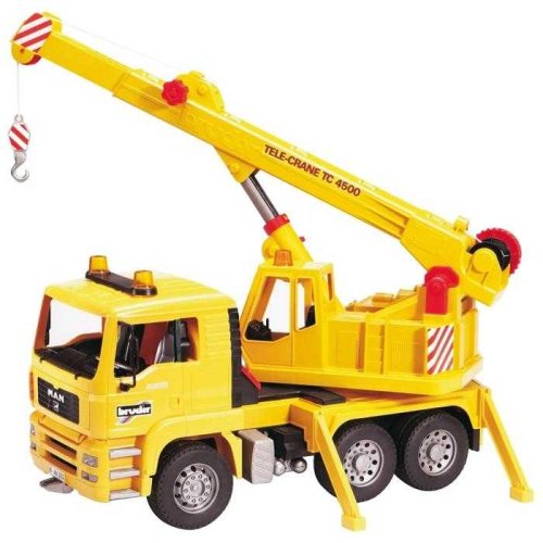 Bruder Nákladní auto MAN jeřáb stavební MAN TGA Jeřáb žlutý má sklápěcí kabinu, která umožňuje jednoduše nahlédnout do motoru. Venkovní zrcátka lze snadno sklopit, jeřábový nástavec je otočný až o 360°. Výsuvné rameno se může prodloužit a pohodlně ovládat otočným knoflíkem. Navíjecí lano je plně funkční, pro rychlé spuštění je k dispizici odblokovací tlačítko. Vůz má měkké profilované pneumatiky, za kabinou je malá odkládací schránka, na nářadí. Samozřejmě nechybí opěrné nohy pro lepší stabilitu vozu. K tomuto modelu doporučujeme dokoupit zvukový a světelný maják BR2801. Vyrobeno v Německu, z kvalitních materiálů. Hlavní vlastnosti: sklápěcí kabinasklopná zrcátkajeřábový nástavec otočný až o 360°plně funkční navíjecí lano vyrobeno v Německu