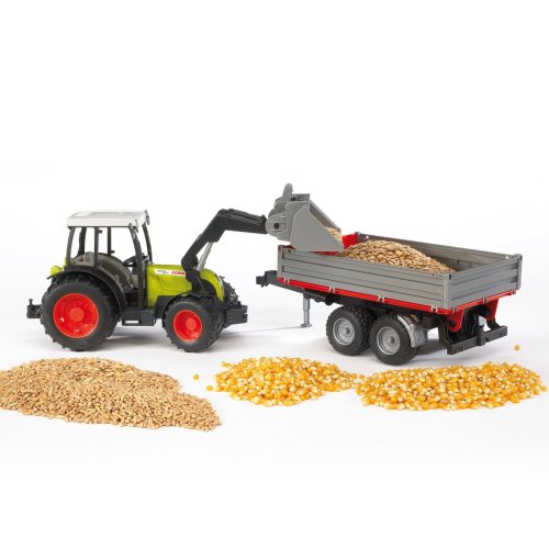 Tento model Class ze série Nectis s přívěsem a předním nakladačem je nepostradelným pomocníkem zejména na poli. Díky pevným profilovým pneumatikám je traktor snadno řiditelný a manévrovatelný i v náročnějších půdních podmínkách. Tento model je vybaven plně funkčním čelním nakladačem, který lze snadno odejmout, má otevíratelný motorový prostor, zasklenou kabinu, funkční řízení - součástí je druhý volant s delším ramenem, který se zasune do stávajícího volantu v kabině střešním výsuvným otvorem a tím velmi usnadní ovládání stroje. Součástí tohoto setu je Bruder sklápěcí červený přívěs, který je opravdu věrnou kopií dvounápravového přívěsu. Má otevírací postranní i zadní bočnice a sklopnou ložnou plochu. Vyrobeno v Německu, z kvalitních materiálů. Hlavní vlastnosti: pevné profilované pneumatikyplně funkční čelní nakladačotevíratelný kryt motoruzasklená kabinadruhý volant pro snadné řízenídvounápravový sklápěcí příves s postranními i zadními bočnicemi a sklopnou ložnou plochouvyrobeno v Německu