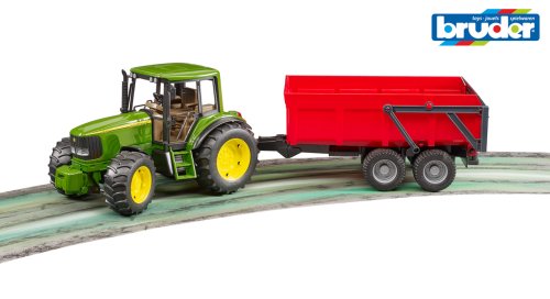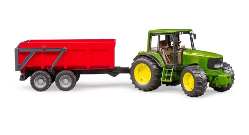 Traktor JOHN DEERE 6920 a sklápěcí valník ocení každý malý zemědělec. Jak jsme zvyklí má traktor Bruder 02057 výklopné víko motoru, profilované pneumatiky a je řiditelný pomocí prodlouženého volatu, který se vkládá otvorem ve střeše traktrou. Valník s automatickou zadní stěnou. Velmi oblíbený valník, který lze připojit ke všem traktorům a strojům BRUDER. Přívěs má automatické zadní čelo - pokud je zapojeno ovládání, čelo se automaticky otevírá při vyklápění přívěsu. Pokud není, zůstává přívěs uzavřen. Pneumatiky má pěkně profilované a dělá stopy jako opravdový valník. Vyrobeno v Německu, z kvalitních materiálů. Hlavní vlastnosti: výklopné víko motoruvalník s automatickou zadní stěnouvyrobeno v Německu