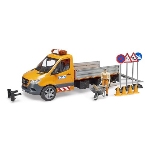 Video je pouze ilustrační, zobrazuje příbuzný produkt. Propracovaný model oblíbeného užitkového vozu Mercedes-Benz Sprinter v úpravě údržby silnic je vybaven bateriově napájeným majákem se světelnými a zvukovými efekty (baterie jsou součástí balení). Je opatřen vyklápěcí korbou se sklopnými bočnicemi a nájezdovými ližinami, odnímatelnou konzolou pro naviják a také otevíratelnými dveřmi kabiny, která je samozřejmě připravená k usazení rozmanitých figurek BWORLD. Součástí balení je realistická figurka silničáře s pohyblivými končetinami a množství rozmanitého příslušenství nepostradatelného pro jeho práci, nářadí pro úklid či značky. V naší nabídce lze nalézt také další příhodná rozšíření a příslušenství charakterem odpovídající modelu. Vyrobeno v Německu, z kvalitních materiálů. Hlavní vlastnosti:vozidlo, figurka, 2 ližiny, 4 značky, 4 kužely a 3 díly nářadímaják se světelnými a zvukovými efekty (3×LR44 baterie jsou součástí balení)výklopná korba se sklopnými bočnicemi a odnímatelnými ližinamiotevíratelné dveřeodnímatelná konzola navijákukompatibilita s BWORLD příslušenstvímvyrobeno v Německu