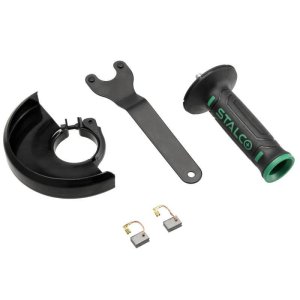 • příslušenství: pomocná rukojeť, bezpečnostní kryt, klíč na vnější přírubu, vnitřní příruba, vnější příruba, 1× sada uhlíkových kartáčů