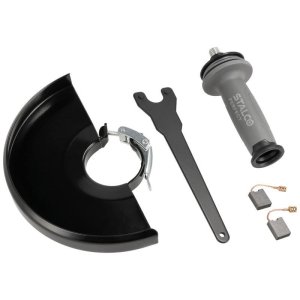 • příslušenství: pomocná rukojeť, bezpečnostní kryt, klíč na vnější přírubu, vnitřní příruba, vnější příruba, 1× sada uhlíkových kartáčů
