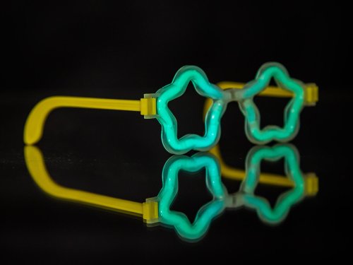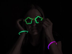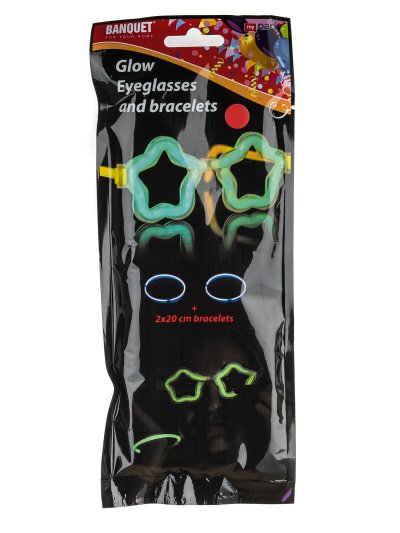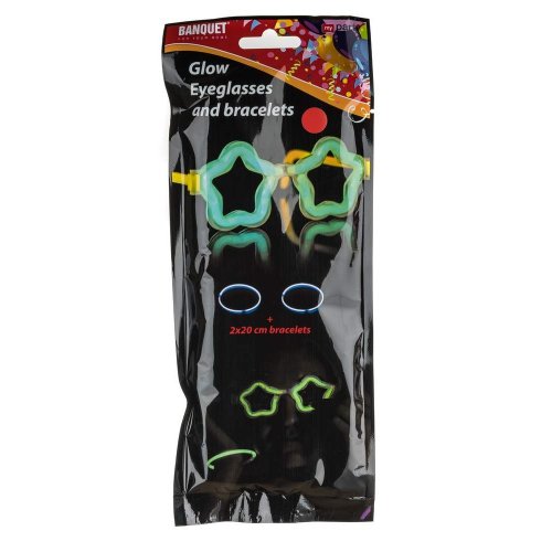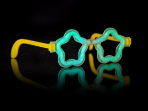 Fluorescenční brýle ve tvaru hvězdy, které vás nebo vaše děti ozdobí na každé párty. Sada obsahuje: 1 ks černých brýlových obrouček, 2 ks fluorescenčních tvarovatelných náramků v pěti barvách. K rozsvícení brýlí dojde při tvarování fluoresenčních náramků do tvaru brýlí a délka svitu je cca 4 hodiny.