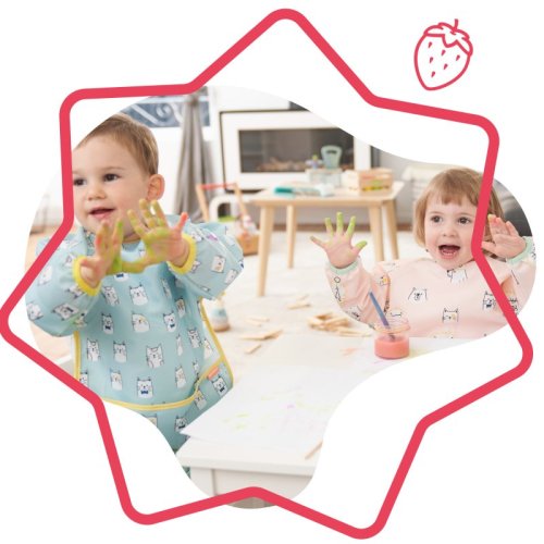 s velkou kapsou na zachycení popadaného jídla během krmení