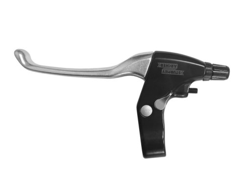 Pravá brzdová páka Sturmey-Archer vhodná také pro bubnové brzdy.Páka má aretační / parkovací tlačítko.Určená pro 4 prsty.Hmotnost: 126 gMateriál: hliníkBarva: stříbrno/černáUrčeno pro odborný servis