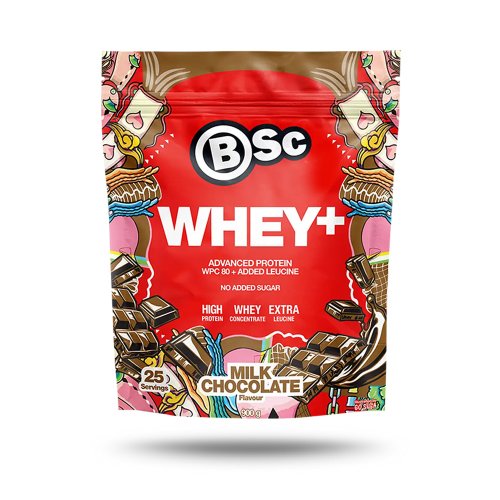 BSc Whey+ je vysoce kvalitní syrovátkový protein navržený pro každého – od rekreačních nadšenců posilovny až po elitní sportovce. Neobsahuje žádné zbytečné přísady a vyniká tím, že na porci obsahuje jeden gram leucinu navíc, což zvyšuje jeho účinnost pro růst a regeneraci svalů. BSc Whey+ je lahodný, snadno mísitelný a prémiový proteinový prášek vyrobený z vysoce kvalitního syrovátkového proteinového koncentrátu. Každá 35 g porce obsahuje 25 g bílkovin, pouze 2,4 g tuku a 2,3 g sacharidů, což z něj činí chytrou volbu pro vaše fitness cíle. BSc Whey+ je obohacen o 1 g leucinu navíc, který pomáhá maximalizovat růst svalů a podporuje jejich udržení, čímž vám dodává energii potřebnou k dosažení nejlepších výsledků. Jedno balení obsahuje 25 porcí. Doporučené dávkování: