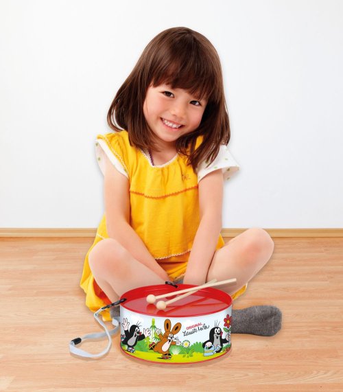 Bubínek pro malé bubeníčky s motivem oblíbených dětských hrdinů Krtečka a kamarádů. Nejjednodušší hudební nástroj, jehož ovládání zvládne každé dítě. I ty menší. Stačí vzít paličky do rukou a začít bubnovat na dětský bubínek. Tento bubínek je momentálně bez popruhu. Průměr bubínku: 20 cm Rozměry balení: 21 x 10 x 21 cm Vhodné pro děti od 3 let