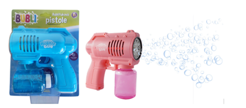 Bublifuková pistole na baterie, která pouhým stisknutím chrlí záplavu bublin. Stiskni spoušť a užívej si nekonečné množství bublin.