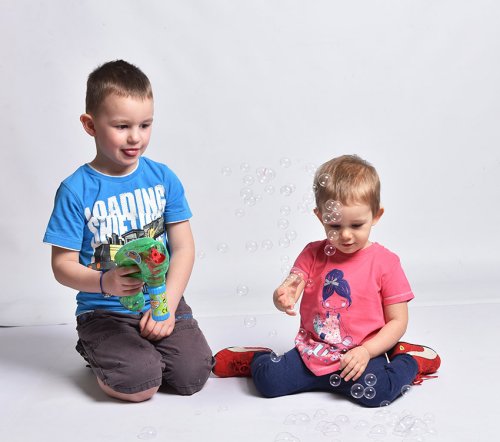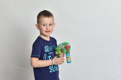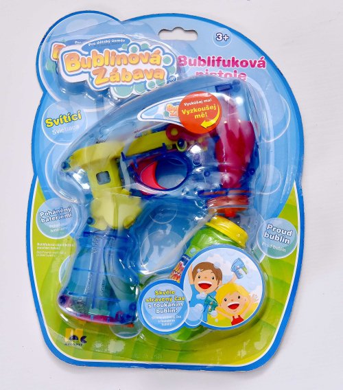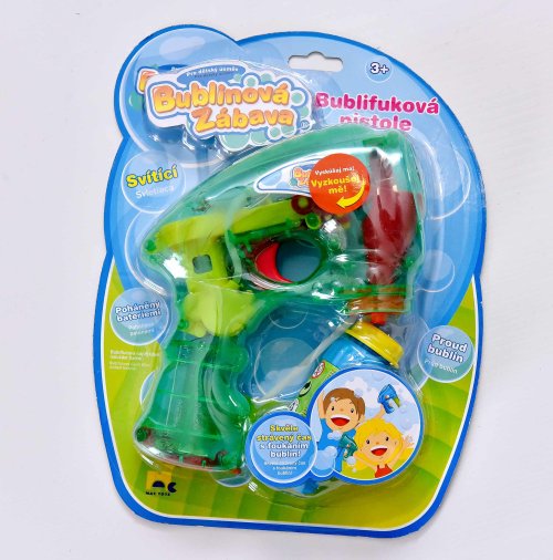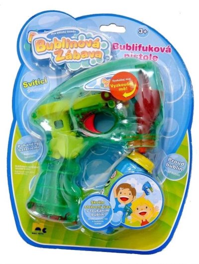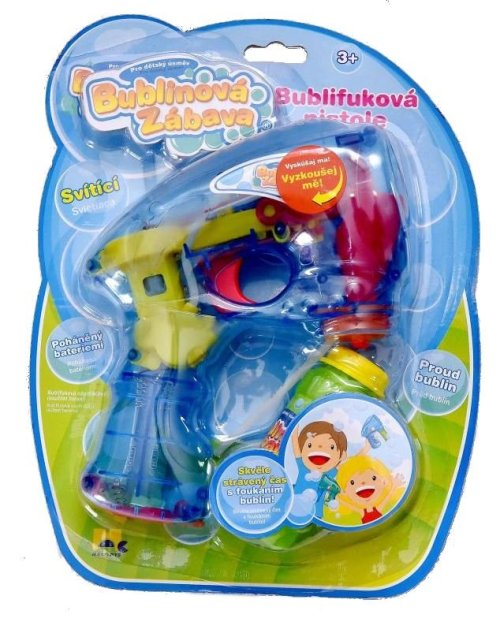 Bublifuková pistole, která při výrobě bublin svítí. Zmáčkni spoušť a sleduj záplavu bublin.