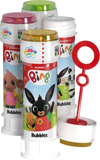 Bublifuk s licencí Bing o objemu 60 ml. Součástí barevného víčka je hra a foukátko. Vhodné od 3 let.