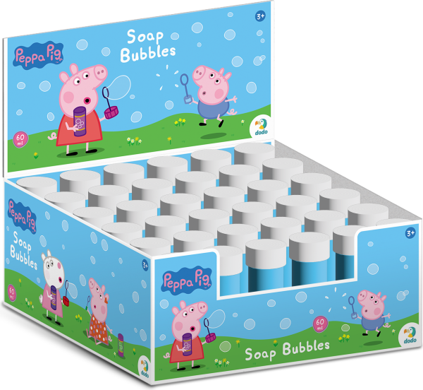 Zábava s bublinkami nikdy neomrzí – obzvlášť když ji doprovází oblíbená rodinka Prasátka Peppy! Ideální na oslavy, venkovní hraní i jako malý dárek. Velikost: 4 × 10,5 cm