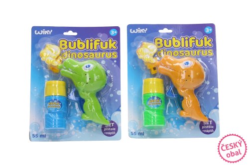 Bublifuk dinosaurus. Objem 55 ml. 2 varianty - zelená, oranžová.