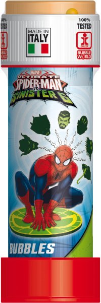 Bublifuk s motivem akčního hrdiny Spider-mana o obsahu 60 ml. Součástí barevného víčka je hra a foukátko. Lze zakoupit i jako celý display, kde je 36 ks.