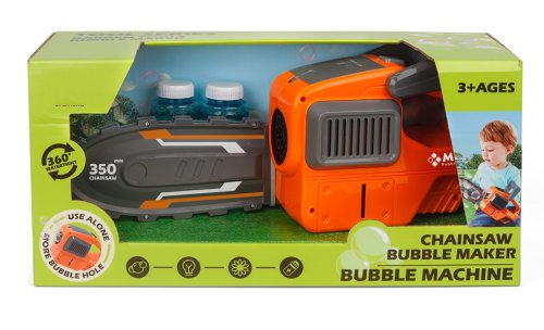 Bublinkovač motorová pila. Vydává světelné efekty. Velikost 35 cm. Aktivace tlačítkem u rukojeti. Přesné rozměry 35x9,5x18,6 cm. Baterie 4xAA, nejsou součástí balení.