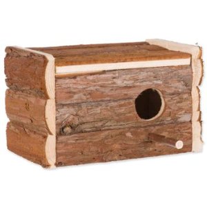 Dřevěná budka s kůrou pro drobné ptactvo pro kladení vajec.