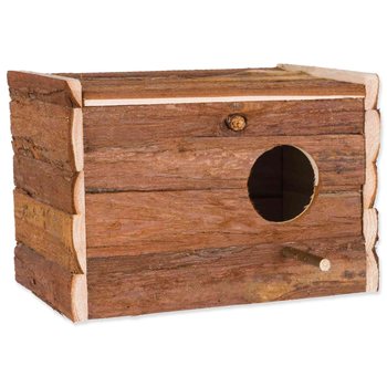 Dřevěná budka s kůrou určená pro ptactvo na kladení vajec.