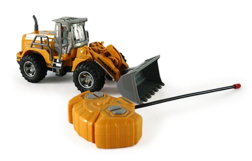Bagr s přední lžící. Na dálkové ovládání. Pohybuje se dopředu, dozadu a dostran. Velikost 1:28. Nabíjení na USB.