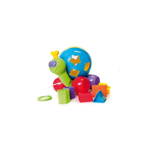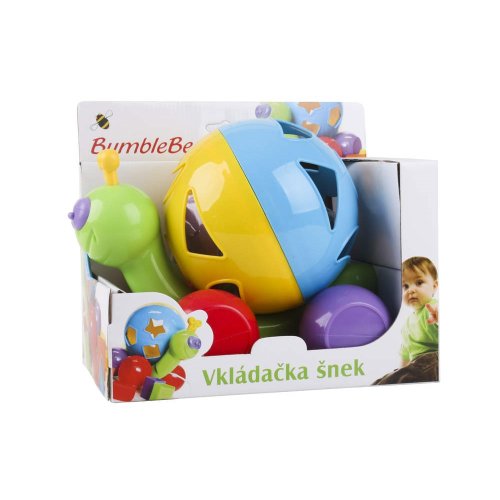 Vkládačka šnek na kolečkách 2v1 obsahuje šest prvků pro výuku tvarů a barev (koule je odnímatelná) , doporučený věk od 12-ti měsíců , průměr koule cca 150mm, 6 tvarů. Testováno v ČR.