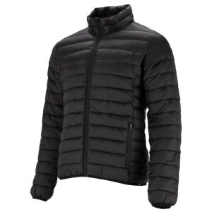 prošívaná polyamidová bunda syntetické peří tepelná izolace elastický pas a manžety rukávů stojatý límec klapka na bradu oboustranný přední zip YKK 2 kapsy YKK v pase k dispozici ve dvou barvách: tmavě …