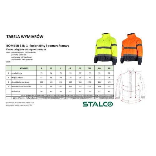 Bunda zateplená, výstražná BOMBER, 3 v1, XL, oranžová, STALCO