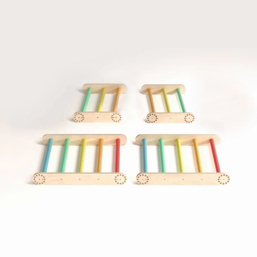 Mít vlastní herní park přímo doma to je sen každého dítěte. Tato malá lezecká sada nabízí mnoho variant sestavení, které snadno změníte bez použití nářadí. Je vhodná pro menší děti i pro ty, které už rády zdolávají výšky. Díky kombinaci přírodního dřeva a nádherných duhových barev se stane atraktivní součástí dětského pokoje nebo herny. Sestava se skládá ze dvou trojúhelníku. Velký trojúhelník má rozměry 51,5 x 63,5 x 66 cm (výška × hloubka × šířka) a malý trojúhelník je o rozměrech 31,5 × 63,5 × 43,5 cm (výška × hloubka × šířka). Produkt je vyroben z kvalitní březové překližky; barevné odchylky, suky či drobné opravy ve dřevě jsou přirozené a dodávají výrobku jedinečný charakter. Hlavní vlastnosti: multifunkční využitínosnost 80 kgvzdálenost mezi příčkami je 8,5 cmtrénuje motoriku a rovnováhuskvělý doplněk do dětského pokoje či herny