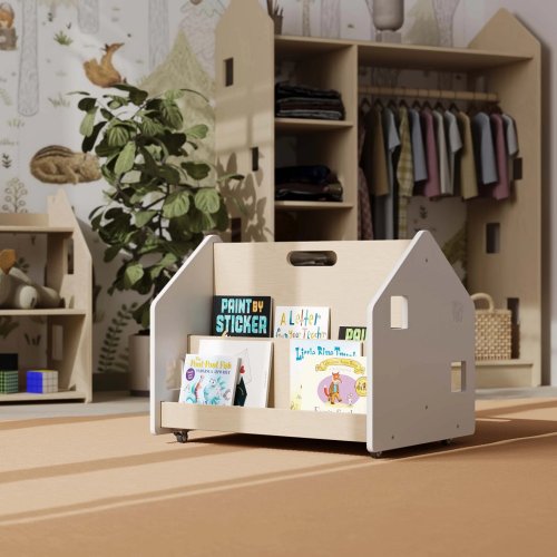 Oboustranná knihovna na kolečkách je praktické a bezpečné řešení do dětského pokoje. Knihy jsou v ní uložené tak, aby děti viděly jejich obálky a mohly si samostatně vybrat to, co je zaujme. Podporuje tak nezávislost i přirozenou lásku ke čtení. Díky kolečkům lze knihovnu snadno přesunout tam, kde je zrovna potřeba. Její design je ekologický, bezpečný a maximálně přátelský k dětem.Knihovna je vyrobena z kvalitní lakované březové překližky a její stabilní konstrukce s hladce zaoblenými hranami zajišťuje maximální bezpečnost. Barva produktu se může mírně lišit od fotografie v závislosti na nastavení vašeho zařízení. Hlavní vlastnosti: stabilní a bezpečná konstrukceoboustranný přístupmobilita díky kolečkůmvyrobeno z kvalitní březové překližky, bezpečné laky na vodní bázivyrobeno v České republice