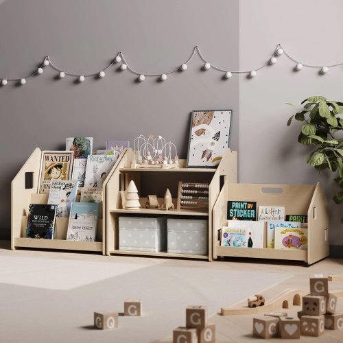 Oboustranná knihovna na kolečkách je praktické a bezpečné řešení do dětského pokoje. Knihy jsou v ní uložené tak, aby děti viděly jejich obálky a mohly si samostatně vybrat to, co je zaujme. Podporuje tak nezávislost i přirozenou lásku ke čtení. Díky kolečkům lze knihovnu snadno přesunout tam, kde je zrovna potřeba. Její design je ekologický, bezpečný a maximálně přátelský k dětem.Knihovna je vyrobena z kvalitní lakované březové překližky a její stabilní konstrukce s hladce zaoblenými hranami zajišťuje maximální bezpečnost. Barva produktu se může mírně lišit od fotografie v závislosti na nastavení vašeho zařízení. Hlavní vlastnosti: stabilní a bezpečná konstrukceoboustranný přístupmobilita díky kolečkůmvyrobeno z kvalitní březové překližky, bezpečné laky na vodní bázivyrobeno v České republice
