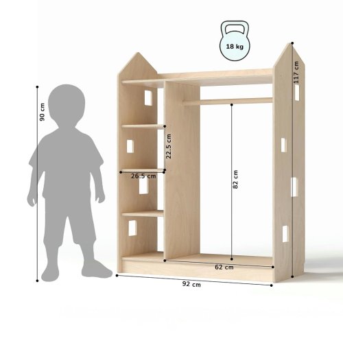 Objevte novinku BusyKids pro snadnou a hravou organizaci dětského pokoje – dětskou skříň ve tvaru domečku. Skvěle doplní oblíbené úložné police na hračky a knihy ze stejné kolekce a vnese do prostoru útulnou a hravou atmosféru. Skříň je navržena podle principů Montessori. Díky otevřenému přístupu k policím si děti snadno samy vybírají oblečení, udržují pořádek a postupně rozvíjejí samostatnost a zodpovědnost. Volbou skříně BusyKids podporujete nejen pořádek v pokoji, ale také kreativní rozvoj a samostatnost svého dítěte.Skříň je vyrobena z kvalitní březové překližky a barevné odchylky, uzly či drobné opravy ve dřevě jsou přirozené a dodávají výrobku jedinečný charakter. Barva produktu se může mírně lišit od fotografie v závislosti na nastavení vašeho zařízení. Každý kus je originál.  Hlavní vlastnosti: hravý design ve tvaru domečkuMontessori přístup – podporuje samostatnost a pořádekpodporuje rozvoj kreativity a zodpovědnostikompatibilní s ostatními BusyKids úložnými produkty vyrobeno z kvalitní březové překližky, bezpečné laky na vodní bázivyrobeno v České republice