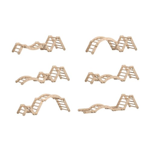 Mít vlastní herní park přímo doma to je sen každého dítěte. Tato velká lezecká sada nabízí desítky variant sestavení, které snadno změníte bez použití nářadí. Je vhodná pro menší děti i pro ty, které už rády zdolávají výšky. Sestava se skládá ze třech prvků. Dvou trojúhelníků a jednoho balančního oblouku. Velký trojúhelník má rozměry 51,5 x 63,5 x 66 cm (výška × hloubka × šířka), malý trojúhelník 31,5 × 63,5 × 43,5 cm (výška × hloubka × šířka) a balanční oblouk je o rozměrech 21 × 63,5 × 75 cm (výška × hloubka × šířka). Produkt je vyroben z kvalitní březové překližky; barevné odchylky, suky či drobné opravy ve dřevě jsou přirozené a dodávají výrobku jedinečný charakter. Hlavní vlastnosti: multifunkční využitínosnost 80 kgvzdálenost mezi příčkami je 8,5 cmtrénuje motoriku a rovnováhuskvělý doplněk do dětského pokoje či herny