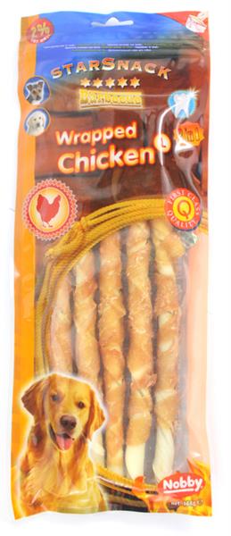 Žvýkací tyčky pro psy – sušená hovězí kůže obalená kuřetem. StarSnack Wrapped Barbecue je přírodní a chutná pochoutka pro psy s nízkým obsahem tuku. Sušená hovězí kůže obalená kuřetem je doplňkové krmivo, které slouží k posílení žvýkacích svalů, podporuje dentální hygienu a napomáhá odstraňování zubního povlaku. Balení snadno otevřete a opět zavřete pomocí zipu. Složení: Kuře 58,1 %, surová hovězí kůže 36,3 %. Analytické složky: Hrubý protein 88,0 %, obsah tuku 2,0 %, hrubá vláknina, 1,0 %, hrubý popel 2,5 %, vlhkost 18,0 %. Krmný návod: Podávejte jako odměnu nebo pamlsek s ohledem na velikost a potřeby zvířete. Zajistěte psovi stálý přístup k čerstvé pitné vodě.