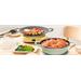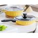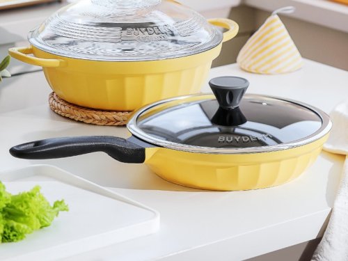 Pánev je kompatibilní se všemi typy sporáků, včetně indukčních, plynových, elektrických a keramických. Její jedinečný retro styl a pastelové barvy dodávají kuchyni osobitý charakter a kombinují moderní funkčnost s klasickým designem.