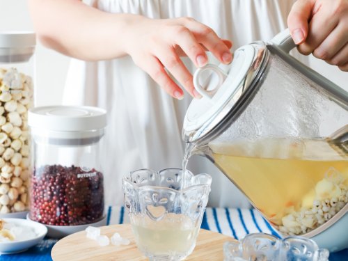 Zdravé nápoje, pití a polévky v jedné konvici.