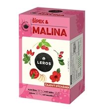 Bylinný čaj Leros: Čajový dýchánek - šípek a malina, směs bylin a ovoce voní a chutná jako miska právě natrhaných zralých lesních malin Lahodná příchuť malin se snoubí s šípky, které podporují odolnost …