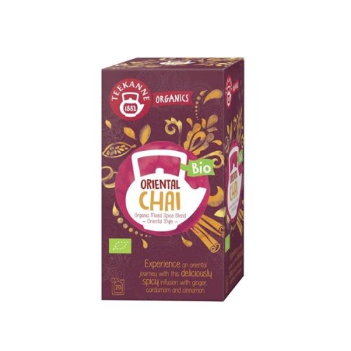 BIO bylinný čaj Teekanne ORGANICS - Oriental Chai, čaj s kořením Zažijte orientální chuť s tímto lahodně kořeněným nálevem se zázvorem, kardamomem a skořicí Balení obsahuje 20 dvoukomorových sáčků po …