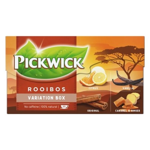 Porcovaný bylinný čaj Rooibos Variace, 20 sáčků ve čtyřech příchutích Bylinný čaj rooibos s kořením a Bylinný čaj rooibos aromatizovaný s citrusovým oplodím / s částečně extrahovanou vanilkou / se zázvorem …